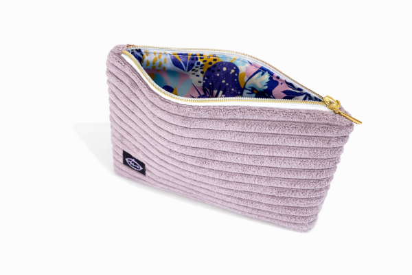 Stylowa i praktyczna kosmetyczka wykonana z odpornego na przetarcia sztruksu. Wnętrze z wodoodpornego poliestru chroni zawartość przed wilgocią. Płaska forma i zamek błyskawiczny zapewniają wygodę użytkowania – idealna do torebki i w podróży.