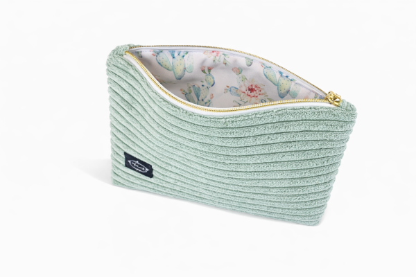 Stylowa i praktyczna kosmetyczka wykonana z odpornego na przetarcia sztruksu. Wnętrze z wodoodpornego poliestru chroni zawartość przed wilgocią. Płaska forma i zamek błyskawiczny zapewniają wygodę użytkowania – idealna do torebki i w podróży.